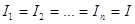 Ток на отдельных участках имеет одинаковые значение.