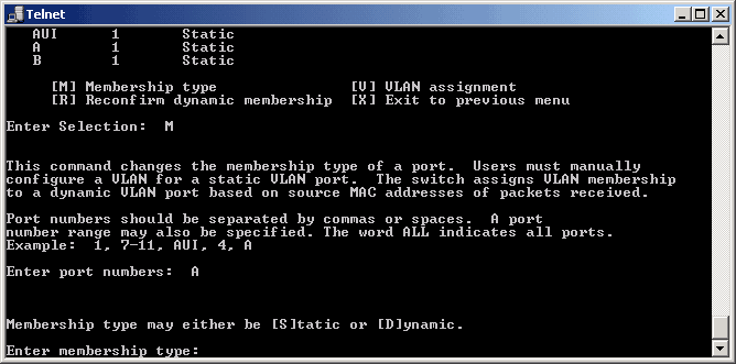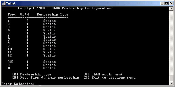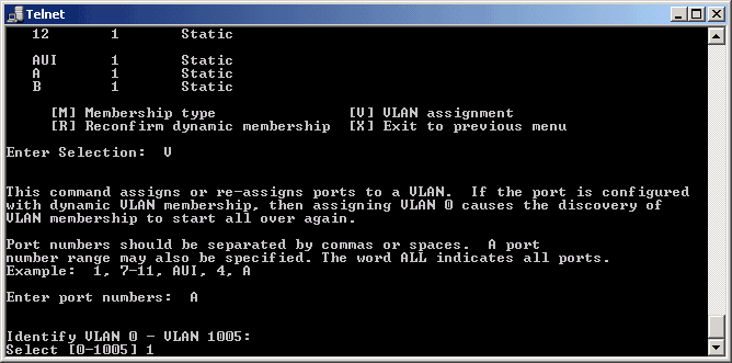 меню E - VLAN membership: