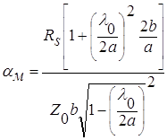 волноводе складывается из затухания за счет потерь в металлических стенках и в