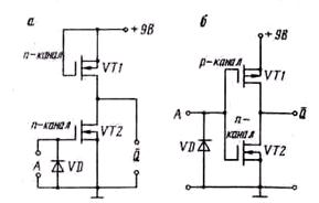 10, б приведена схема такого вида. Транзисторы VT1 и VT2