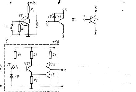 В рассмотренных схемах логических элементов для упрощения показывалось,