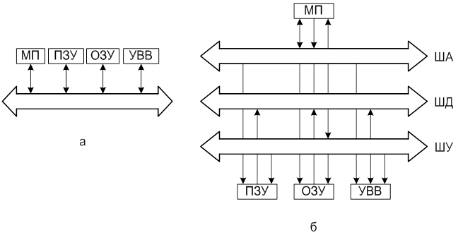 одномагистральных комплексов является то, что МП должен выполнять как функции