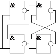 Распределение четырёх элементов 2И-НЕ составляющих триггер