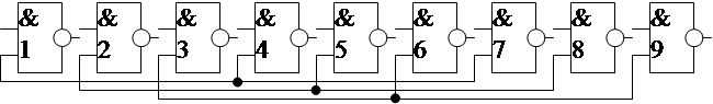 Для распределения девяти оставшихся элементов 2И-НЕ по трём
