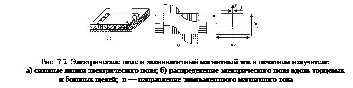 противофазны. Направление эквивалентного магнитного тока в торцевых и боковых