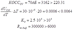 Оценим напряжение ошибки на выходе каскада,