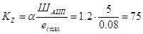 Исходя из максимального коэффициента усиления ,