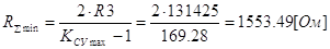 определим минимальное значение суммарного сопротивления резисторов R1 и R2.