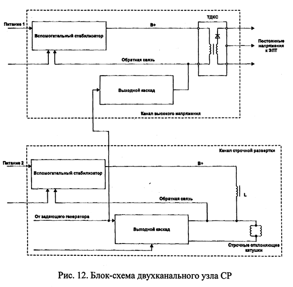 імпульсного, а також у блоці рядкового розгорнення і на ЭЛТ — 6 кв і 25 кв.
