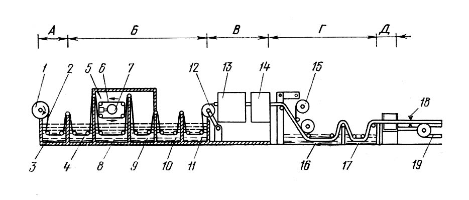 в ванне 16 осуществляют
