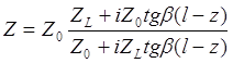 в любой другой точке вдоль линии полное сопротивление Z