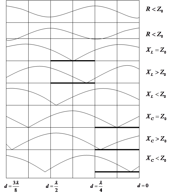 найдено, что коэффициент стоячей волны равен бесконечности, а значения d лежат в диапазоне от 0 до , от до и т.д., то нагрузка должна