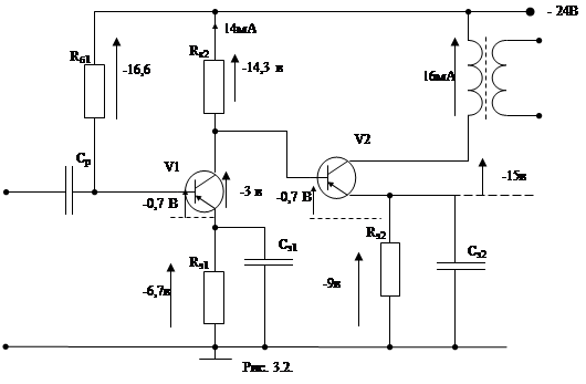 и расчет цепи усиления (К – цепи) по постоянному току (п.3).