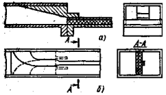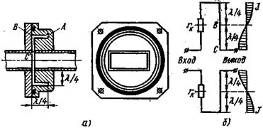 показан на рис. 15,б. Прямоугольный волновод сочленяется с круглым так же, как