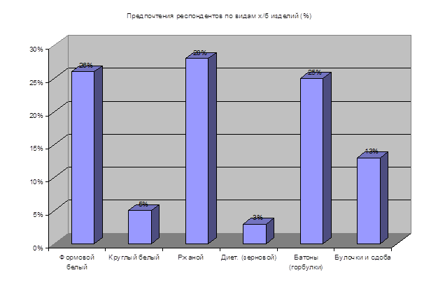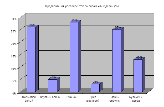 – 28%, формовой белый – 26%, батоны и горбулки – 25%, булочки и сдоба 13%,