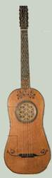 гитара (guitarra sarracenica), овальной формы, её нижняя дека выпукла, широкий