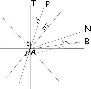 причинные связи вдоль таких линий невозможны. Однако, по условию, мы строим
