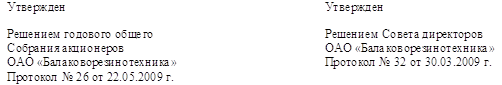 деятельности по управлению предприятием ОАО "Балаковорезинотехника" в