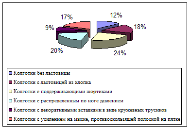 Колготки занимают наибольший удельный вес в ассортименте чулочно-носочных