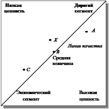 рынке, т.е. между ценой товара и его позицией на рынке должно быть строгое