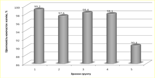 годинній експозиції – 90,4 % елімінації паразитів, що є високоефективним
