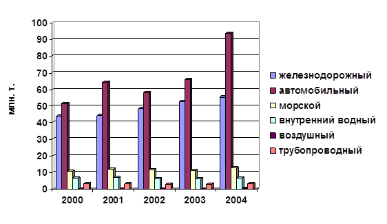 За период 2000-2004 г., объем грузов, перевезенных автомобильным транспортом в регионе, вырос на 81,1%,