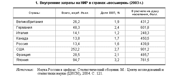 отметить, что доля ВВП России в затратах на НИР примерно соответствует