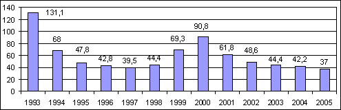 1 января 2005 года внешняя задолженность России составила около 114 млрд.