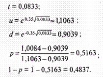 курсовой стоимости акций, поэтому u > 1, a d - процент падения курсовой
