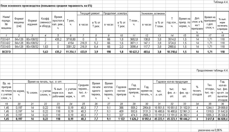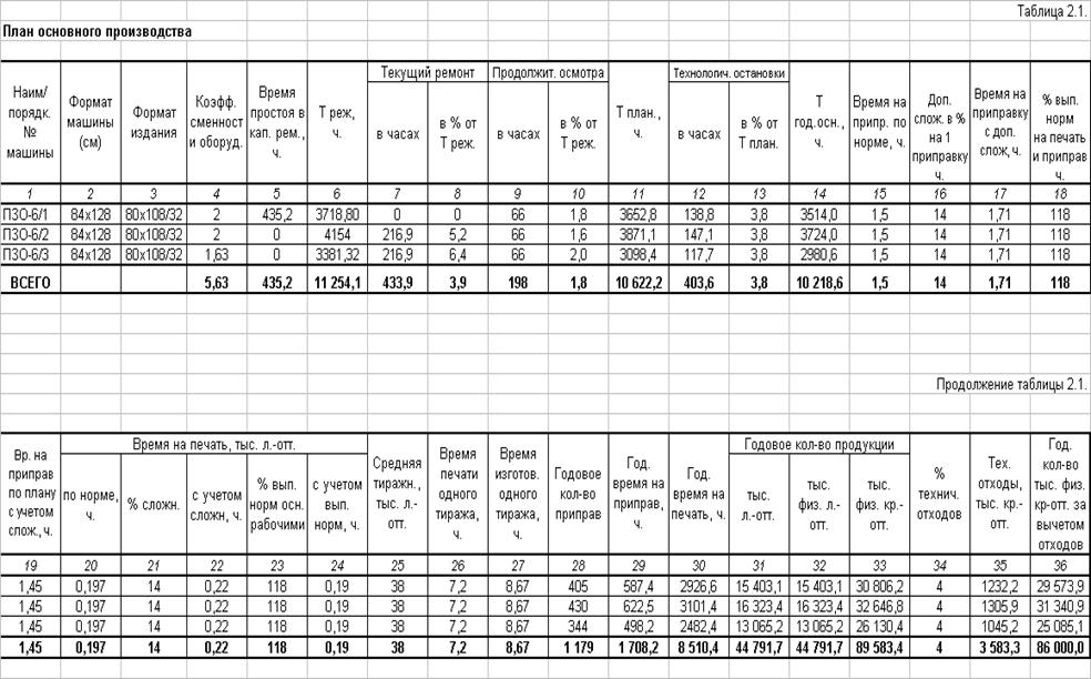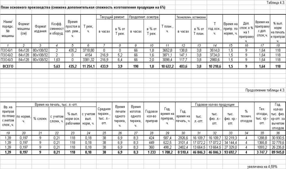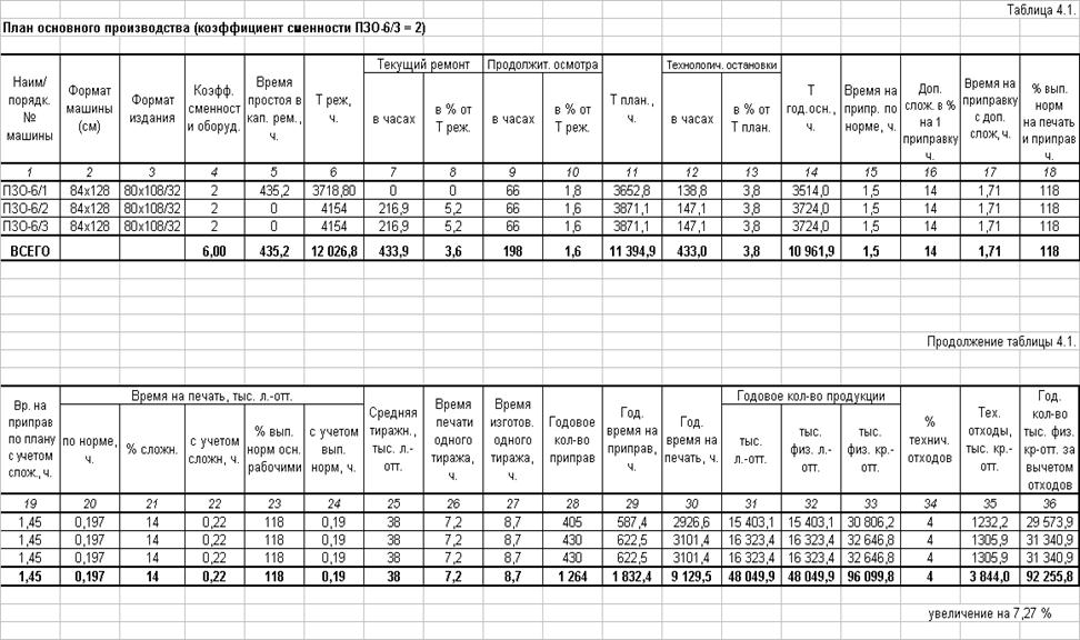 выпускаемой продукции на ПЗО-6/3 путем работы печатной машины в две смены, т.е.