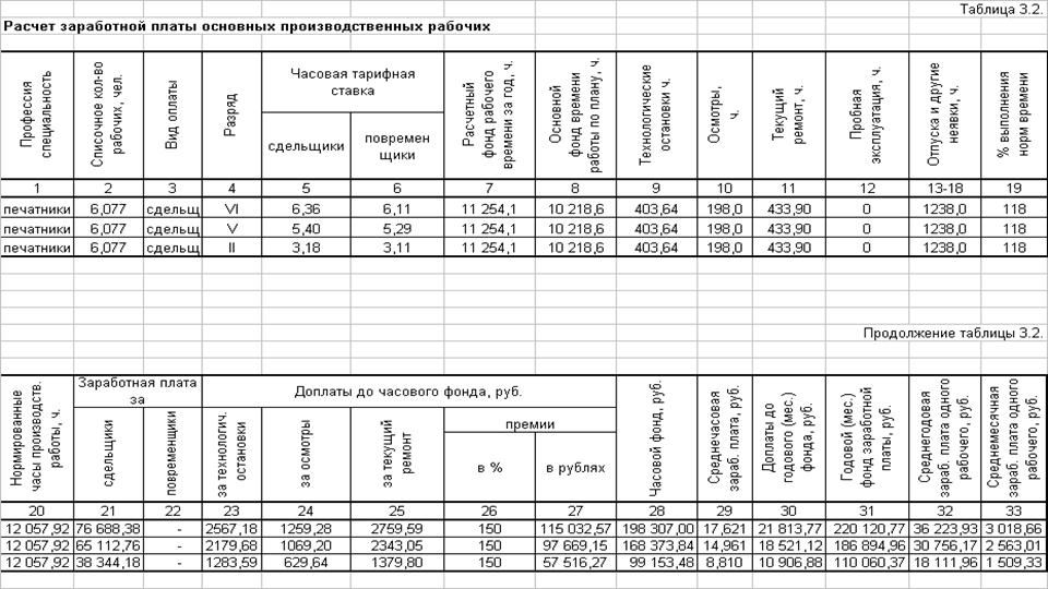 производства, численность и заработная плата основных производственных рабочих.